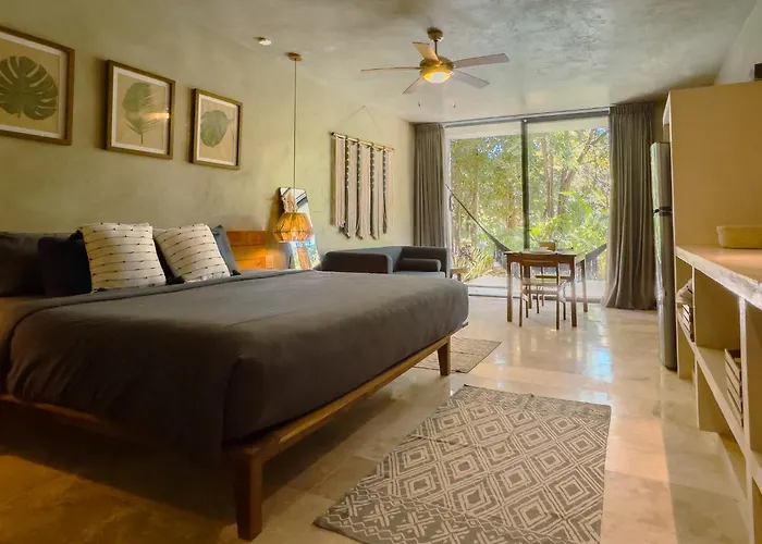 Boasting spa facilities such as a hot tub, Studio 107 Private Pool & King Bed Seremonia Tulum is situated in the La Veleta district, around a 10-minute ride from La Iglesia de Jesucristo de los Santos de los Ultimos Dias Church. Guests can make use of Wi-Fi, free private parking, bicycle and car rental options.